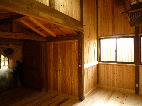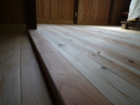 玄関まわりは木製建具からアルミサッシに交換しそのまわりに無垢の杉材、アトピーキラーを施工しました。