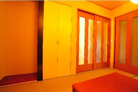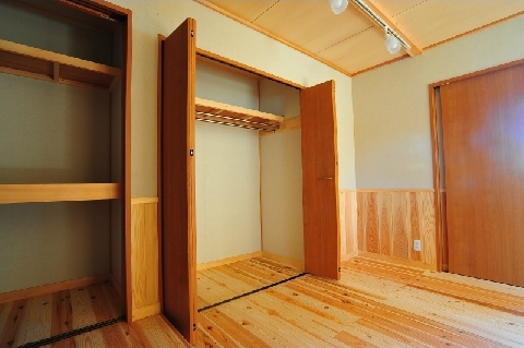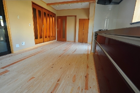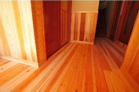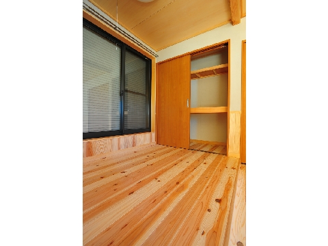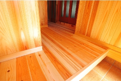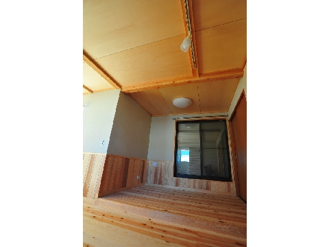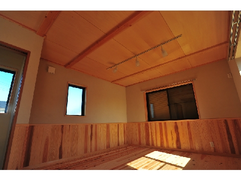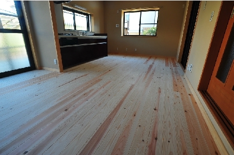 床板には無垢のスギ材を、壁は珪藻土を左官職人がコテで仕上げました。